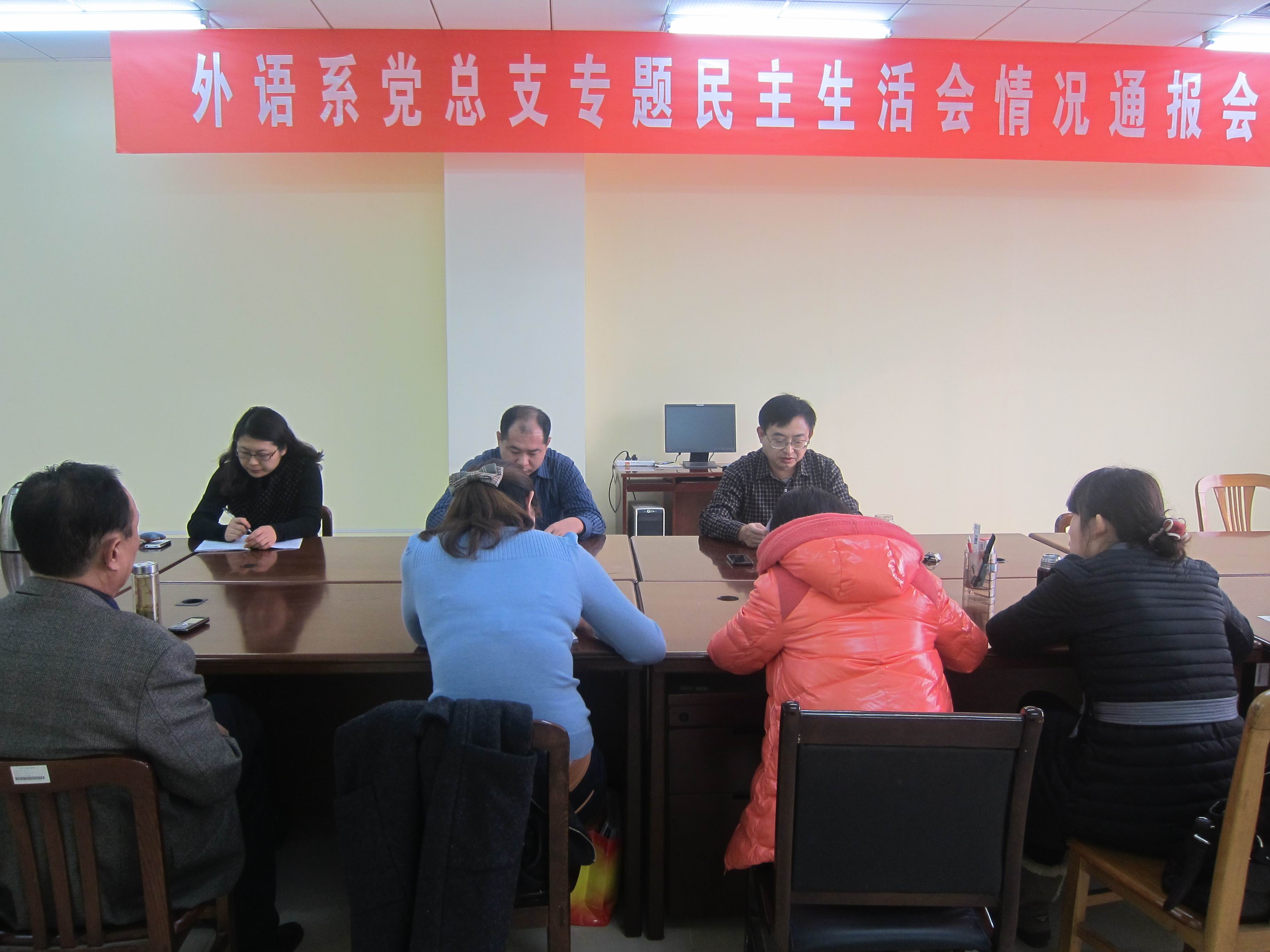 王传功首先介绍了专题民主生活会的准备情况。他说,外语系党总支对开好专题民主生活会非常重视,首先,领导班子成员自己动手撰写对照检查材料,深入谈心,开展思想交流,民主氛围浓厚,气氛和谐、团结。其次,领导班子剖析检查深刻,认真查找了“四风”方面存在的突出问题,深刻剖析了产生问题的原因,提出了整改措施。三是班子成员批评和自我批评严肃认真,敢于正视问题,达到了团结的目的,进一步深化了对新形势下坚持群众路线的认识,增强了反对“四风”、服务群众、坚持为民、务实清廉的自觉性。