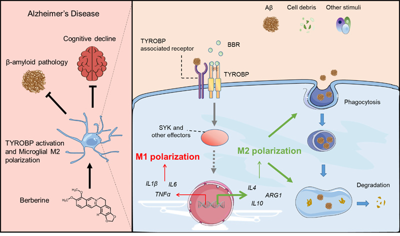 近日,我校精神卫生学院科研团队以第一单位在国际药理学权威期刊《Phytomedicine》(中科院1区,影响因子:6.7)上发表题为“Berberine modulates microglial polarization by activating TYROBP in Alzheimers disease”的研究性论文。精神卫生学院副教授王帅为该论文的通讯作者。该研究发现中药活性成份小檗碱可通过激活TYROBP通路调控小胶质细胞的极化,进而改善阿尔茨海默病模型小鼠的病理及学习记忆功能。该研究为药物调节小胶质细胞稳态的AD治疗策略提供了新的思路。文章链接:https://doi.org/10.1016/j.phymed.2024.156237【信息来源:精神卫生学院 撰稿:王帅 责编:蒲丽娜 终审:张秋生】